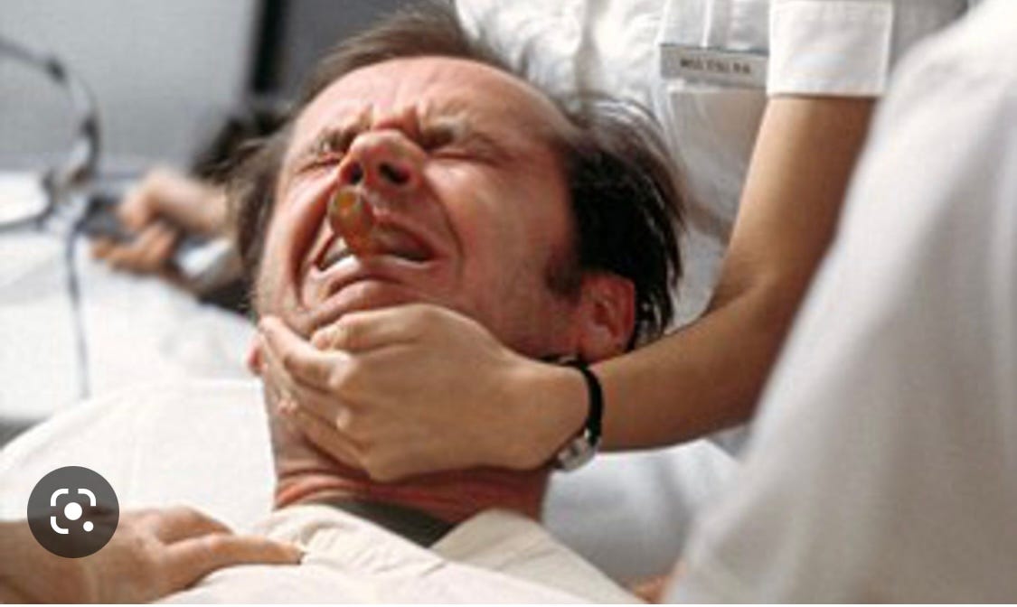 That treatment is ECT, electroconvulsive therapy. (The word “convulsive” in the name does not help, either). The movie is — you can probably guess, “One Flew Over the Cuckoo’s Nest,” where actor Jack Nicholson, portraying a patient in a psychiatric hospital, is shown being tortured by the evil electric device.